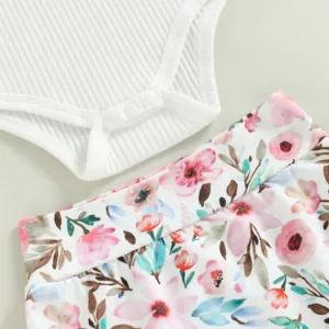 Baby Girls Shorts Set, Sleeveless Romper + Flower/Rainbow/ Print Shorts + Hairband
