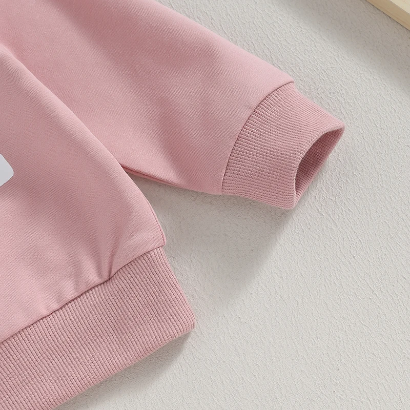 Baby girl outfits, casual letter print sweatshirt and drawstring pants suits, fashionable and comfortable.