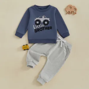 Baby Boy 2Pcs Fall Outfit Long Sleeve Truck Print Sweatshirt + Pocket Pants Set Brother Matching Clothes