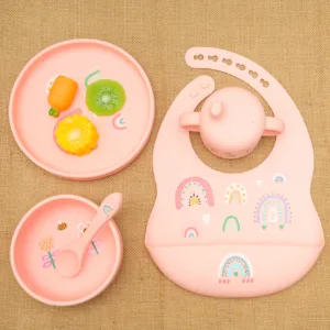 5PCS Silicone Baby Feeding Set BPA Free Cartoon Plates Bowls Spoon Waterproof Bib Learning Cup Non-Slip Dishwasher Safe 6M+