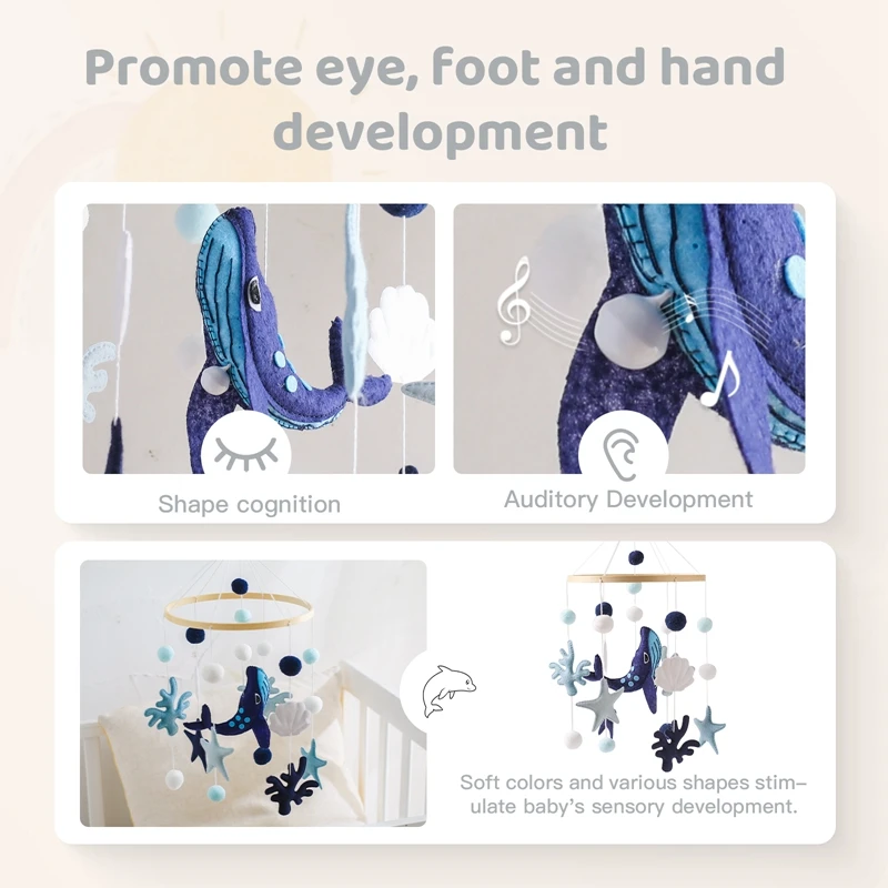 Baby Bed Bell Rattles Crib Mobiles Toy Wooden Rotating Music Rattle For Decor Children Room Hanging Decorations Educational Toys