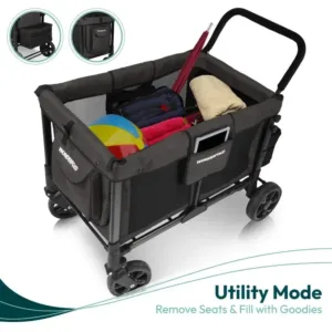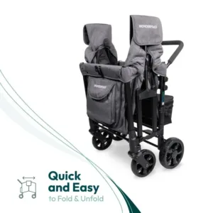 PERFECT BABY & TODDLER STROLLER – Foldable wagon collapses easily for storage and holds up to 4 passengers in removable seats, with five-point adjustable safety harnesses to keep the little ones secure