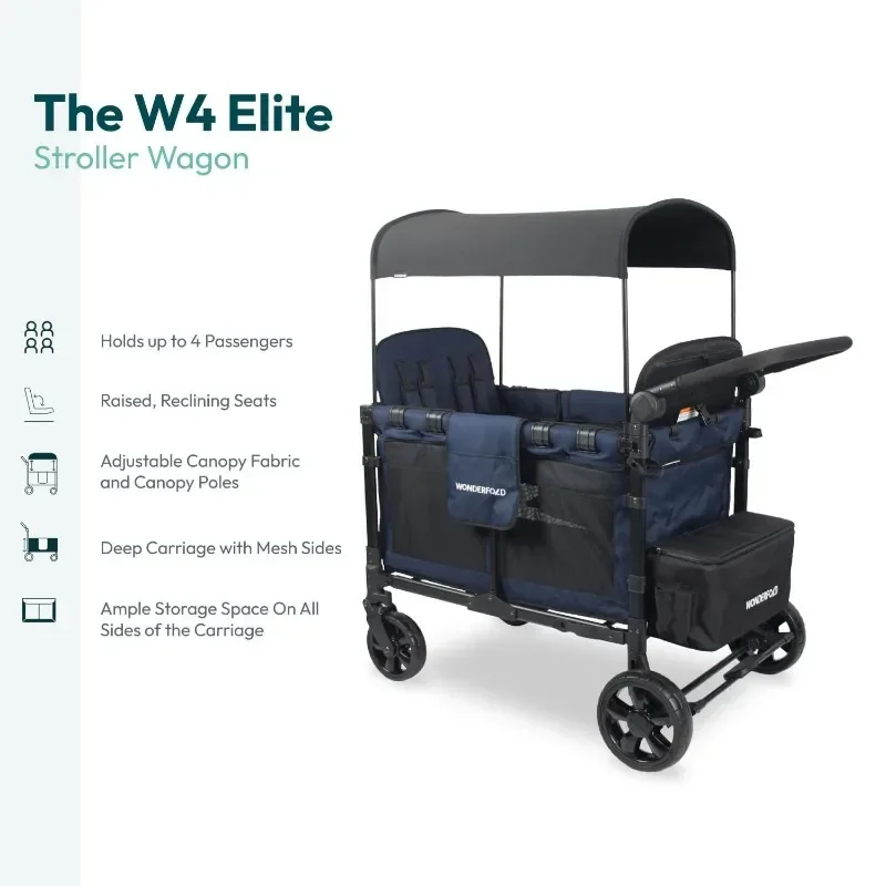W4 Original Stroller Wagon (4 Seater) – Collapsible Wagon Stroller with Seats with 5-Point Harnesses, Easy Access Zipper Door