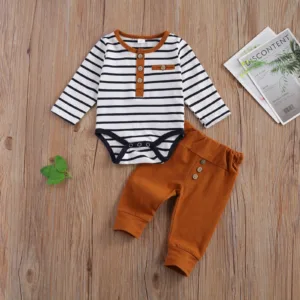 2 Pcs Baby’s Casual Suit Including Long Sleeve Stripe Romper and Loose Trousers-A Good Choice for Baby’s Daily Wear