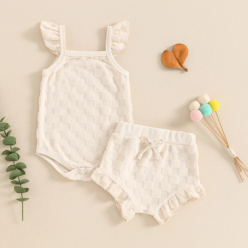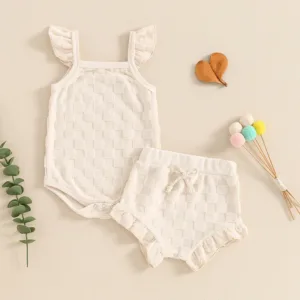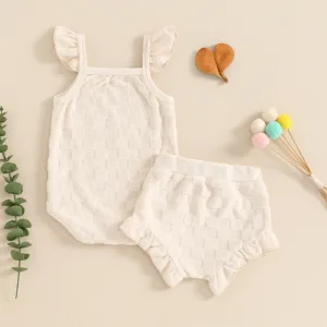 Baby Girl 2 Piece Summer Set, Fly Sleeve Square Neck Romper Elastic Waist Shorts Toddler Outfits