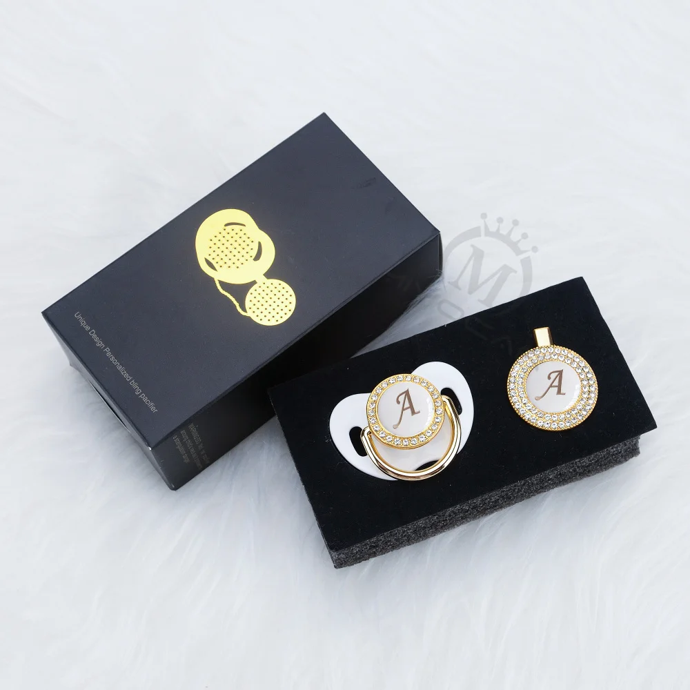 Be the first to review “MIYOCAR Gold silver name Initials letter white elegant A beautiful bling pacifier and pacifier clip BPA free dummy bling LA-W”