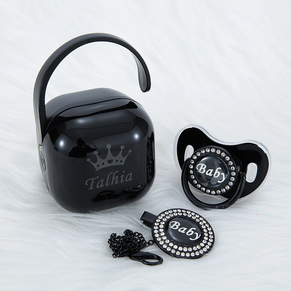 Be the first to review “MIYOCAR personalized all black collection bling pacifier and pacifier clip BPA free dummy bling unique gift baby shower PS-1”