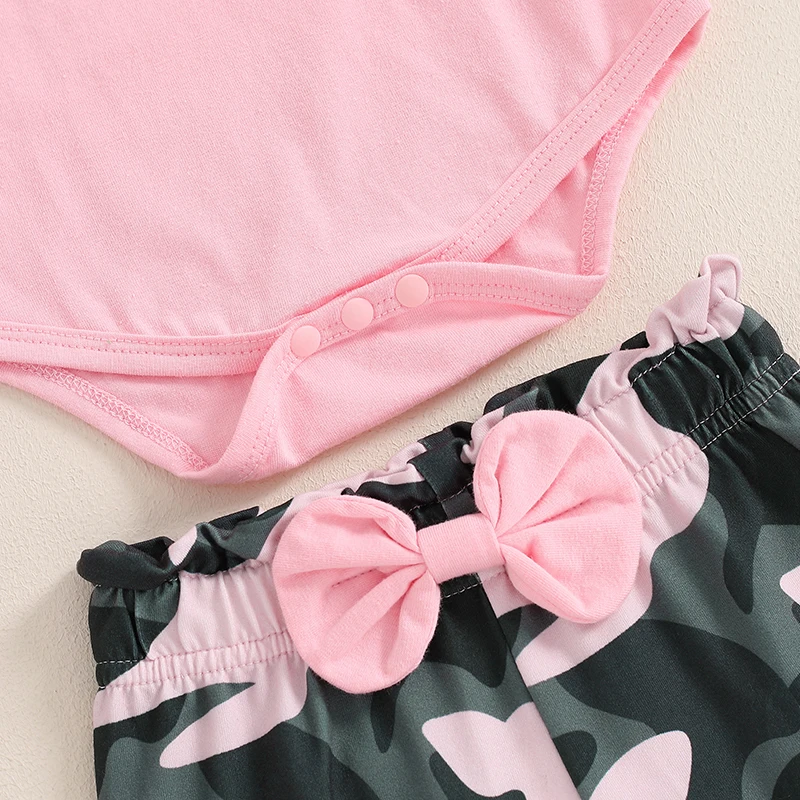 Baby Girls 3Pcs Fall Outfits Long Sleeve Romper + Camouflage Pants + Headband Set Infant Clothes