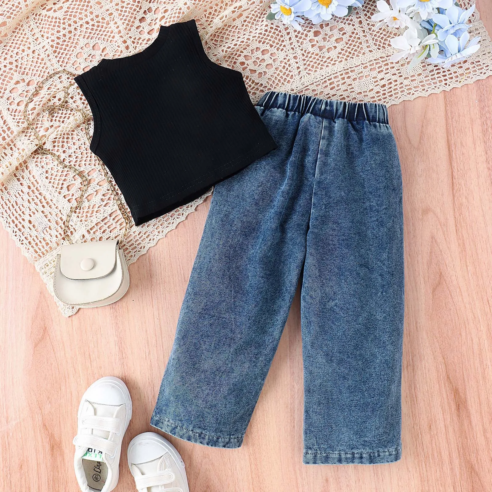 PACKAGE INCLUDED: 1x tops + 1x jeans. Cotton blend for baby girl outfit,cute for girl to dress in Spring fall, no harm to toddler girls skin health. Great gift for your little one.Wash gentle cycle cold with like colors/do not bleach and dry low/ low when needed