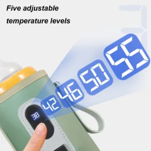 1. Intelligent 5-level Temperature Control: Become your baby’s personal nutritionist with our smart bottle warmer. The digital display allows precise temperature adjustment with 5 levels ranging from 38℃ to 55℃.