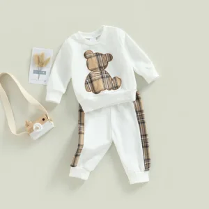 2022-09-27 Lioraitiin 0-24M Newborn Baby 2Pcs Fall Outfits Long Sleeve Plaid Bear Pattern Pullover Tops and Pants Set